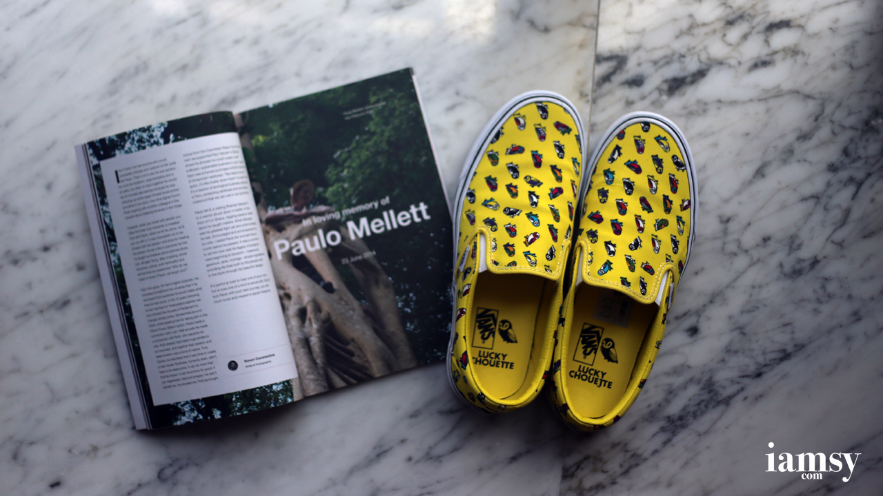 現在我每天超懶惰的都在穿 slip-on,一來貪快捷方便,二來也沒有什麼布鞋不能配的東西吧。超 sharp 的鮮黃色超有夏日 feel,就像朝早起床看到太陽一樣的興奮。其實韓國風吹來,除了興起平民網店 Stylenanda 以外,也帶來不少韓國街頭潮流品牌。其中一個我自己比較留意的就是以街頭元素,大大 logo 和可愛貓頭鷹讓人眼前一亮的 Lucky Chouette(Jardin de Chouette 副缐)。2009 年創辦的 Lucky Chouette 以貓頭鷹名命,Chouette 是法文 owl 的意思;就是品牌招牌啦。這次 Vans x Lucky Chouette 合作推出聯乘款,顏色有黑黃兩款,簡直就是讓人選擇困難症爆發。我知道我必定是那種挑了黑就想要黃,選了黃就想要黑的那種人,所以我唯有穩穩我安定自己說黑鞋也實在太易找,黃色又可愛的比較難遇上啊。