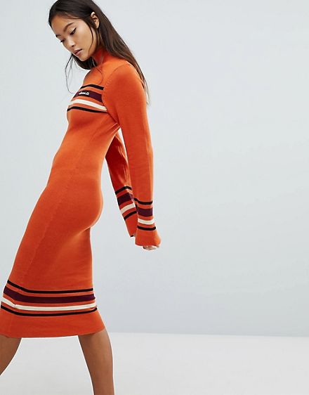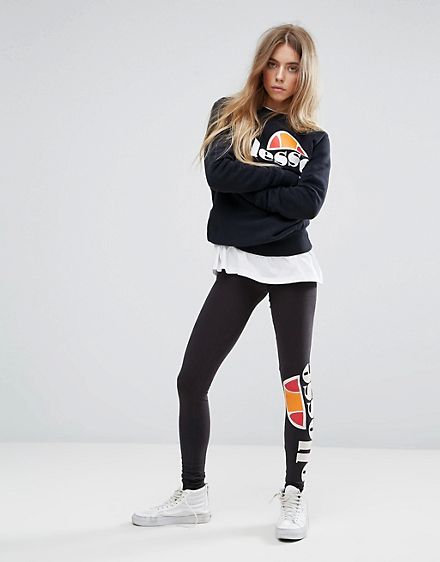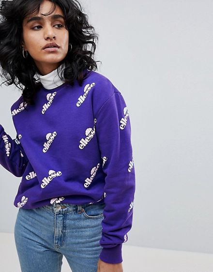 由左到右的連結:紫色 Ellesse 印字衛衣,白色 Ellesse 印字 t-shirt,橙色 Ellesse 針織連身裙,黑色 Ellesse logo 衛衣