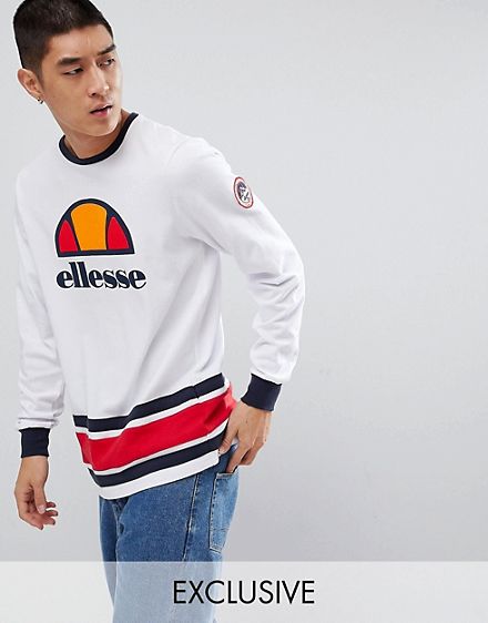 由左到右連結在此:男裝 Ellesse overhead padded 外套、Ellesse Ski 白色長袖 tee、Ellesse 風褸、Ellesse italia 灰色衛衣